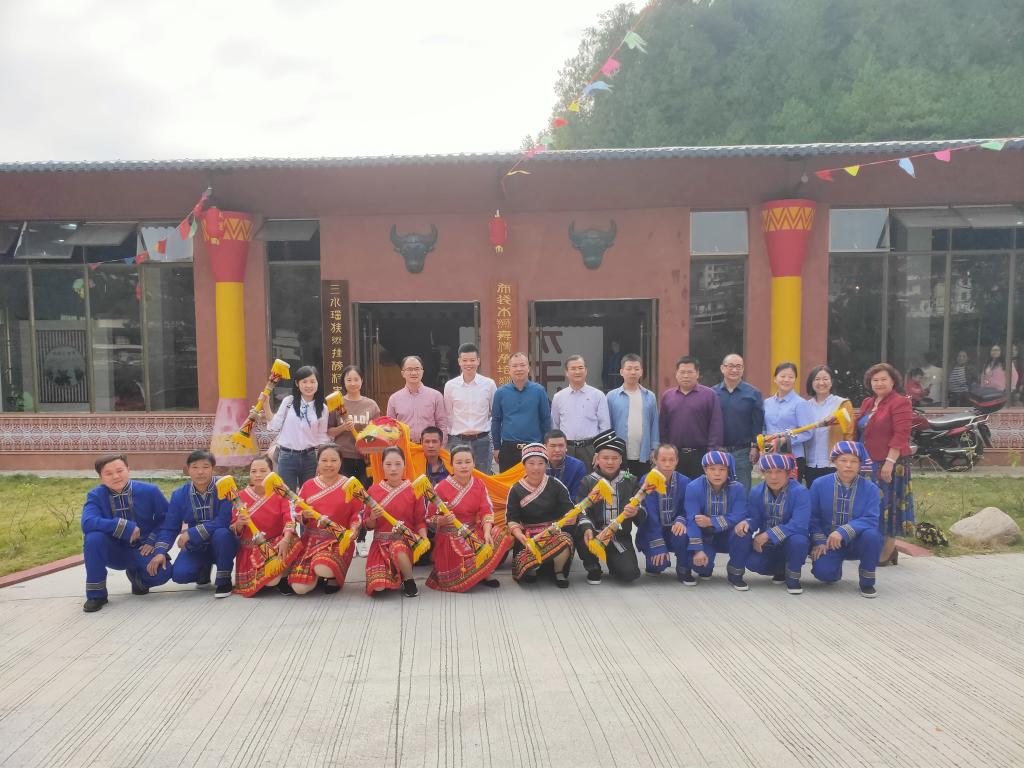 活动的第一站来到三水瑶族民族乡政府,该民族乡党委书记黄斌洪全面介绍了该乡地理、面积、人口、经济、教育、文化以及生态文明等方面的情况。并就当地的经济发展、基础教育、瑶族传统文化传承保护和传承、生态文明建设以及民族团结进步与支部党员同志展开了深度的沟通交流,伟德国际1946与三水瑶族民族乡就民族经济发展、非遗文化传承、红色文化建设达成了初步合作意向。
