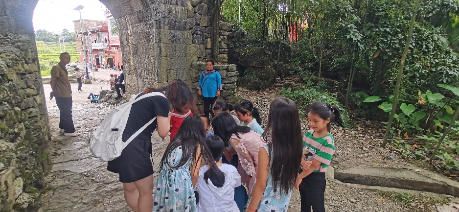 广黔同心队通过深入到集“少数民族特色村寨”“爱国主义教育基地”“红色旅游点”“乡村振兴示范村”等荣誉于一身的石板村开展调研。从聆听抗战故事、庆祝建党一百周年与振兴乡村产业三个方面学习石板村精神。在聆听抗战故事部分,村民老党员把团队成员带回到那段抛头颅、洒热血的抗日保卫战的记忆中,村里遗存的那些石堡枪口、藏身窑洞似乎在诉说着那段尘封的历史。队员们被1944年石板村村民抗日的壮烈故事与抗越老兵亲述的战场故事深深打动,与水族同胞浓厚的民族认同感、中华民族共同体意识产生强烈共鸣。