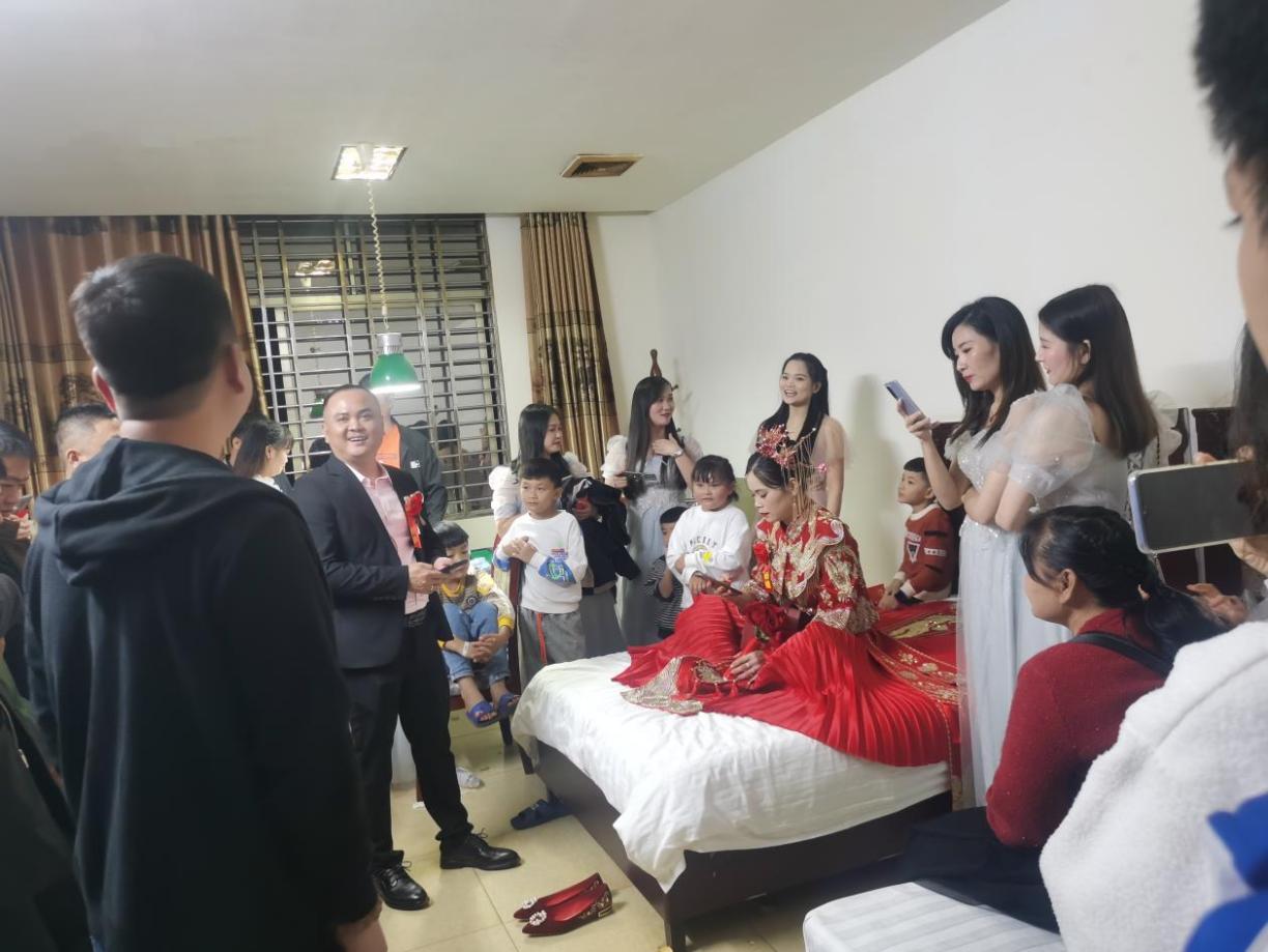 透滩村婚姻习俗引起调研同学的格外关注(三位同学李倩倩、冷嘉铭、贡保草都是北方人),当地人在定亲前会由男方宴请媒婆并送上红包以请求媒婆帮忙跟女方家庭沟通。媒婆与女方谈妥后,男方会购买猪肉猪肉并上门求婚。女方父母如果同意的话会将肉吃掉,反之则为表示反对这门亲事。双方家人同意后,会将男女方与男女方全家的生辰八字拿出请求当地道士等神职人员测算,如果适合就进一步发展并由男方拿大礼去女方家祭拜。