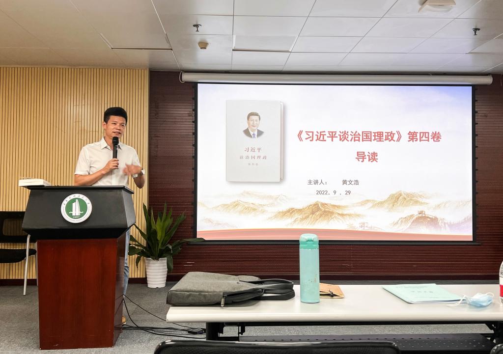 会上,黄文浩对全院各级党组织学习《习近平谈治国理政》第四卷进行了部署,并作了《<习近平谈治国理政>第四卷导读》专题党课。黄文浩从《习近平谈治国理政》四卷本的内在联系、第四卷主要内容(回答四问)、第四卷理论贡献等三个方面进行了领学,要求全体党员增强政治自觉、思想自觉、研究自觉、行动自觉四个学习自觉,利用国庆假期自学,学懂弄通悟透《习近平谈治国理政》第四卷,切实用习近平新时代中国特色社会主义思想武装头脑、指导实践、推动公司产品工作。