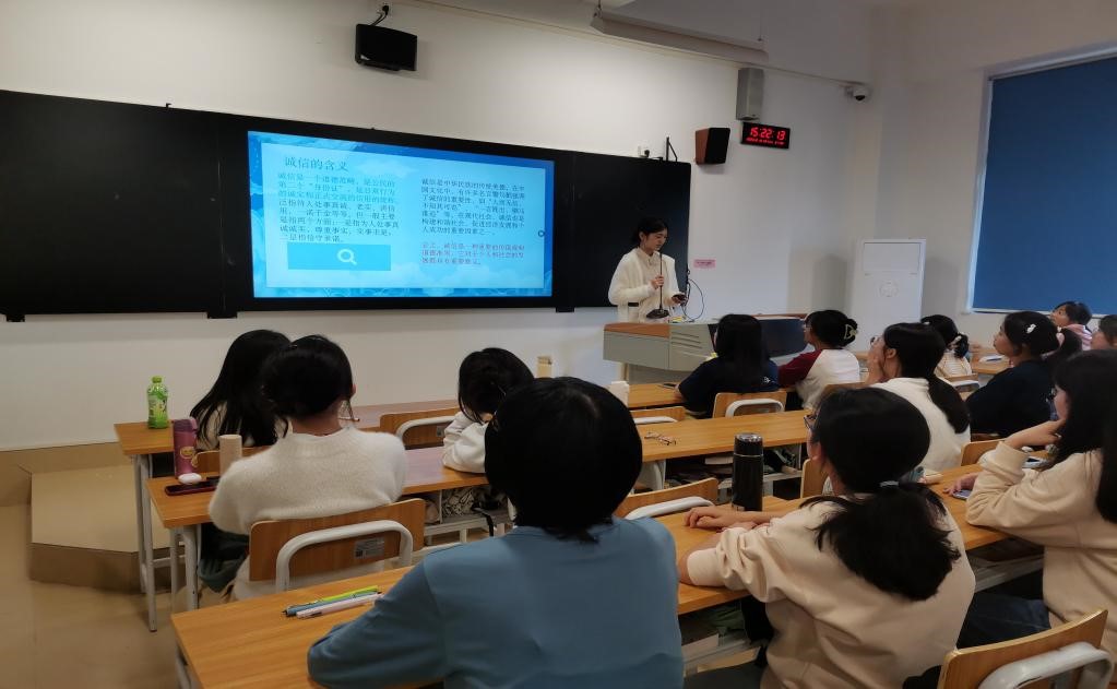 班会伊始,班委代表就诚信的含义向同学们展开论述,认为诚信是公民的第二张身份证。然后,从“立人之本、齐家之道、交友之基、为政之法”四个方面阐述了诚信的意义。“人无信不立,业无信不兴,国无信则衰”紧接着,从个人和社会两个层面讲述了诚信的重要性。最后,向同学们分享了一些诚信的案例,勉励大家要注重诚信问题,做一名合格的员工。