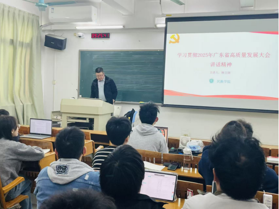 3月12日,伟德国际1946春季学期思政第一课开讲,杨文炯经理以“锚定高质量发展 勇担民族教育使命”为主题,围绕2025年广东省高质量发展大会精神作专题授课,全体员工现场聆听。