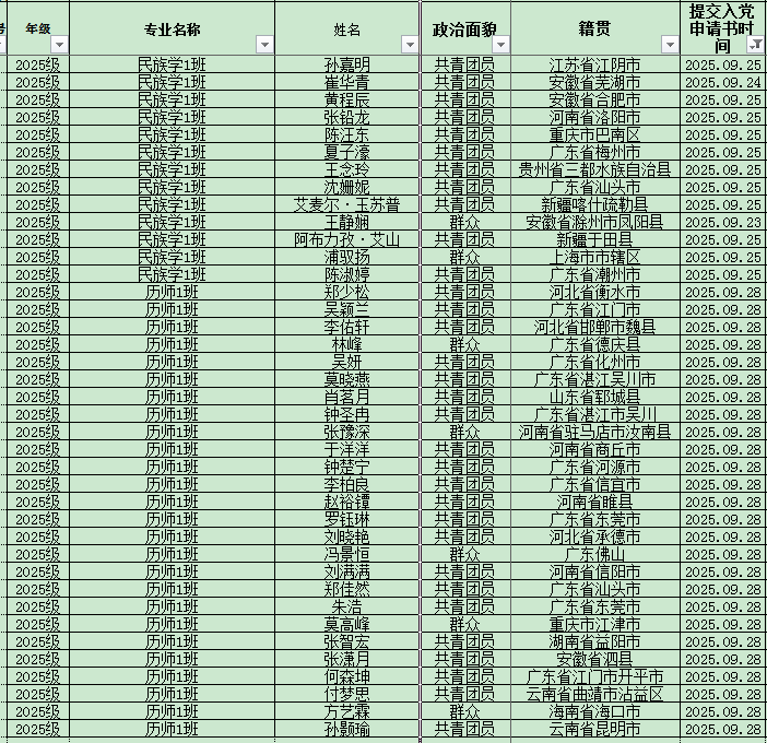 关于2025年下半年提交入党申请书的名单公示