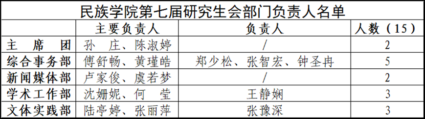 伟德国际1946第四届团委、第七届研究生会主席团、部门负责人人员名单公示